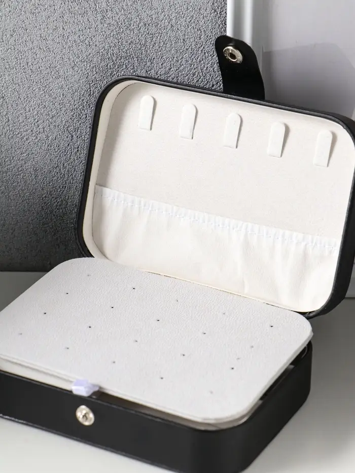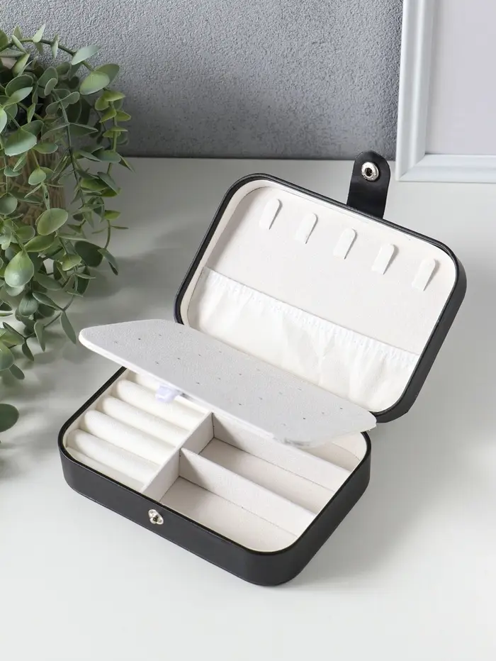 Шкатулка кожзам для украшений "Матовая гладь" чёрная 16,5х11,5х5,5 см
