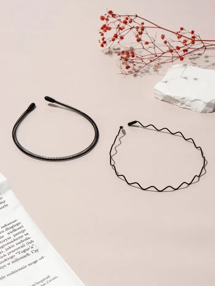 Ободок для волос "Амелия" (набор 2 шт) волна, чёрный