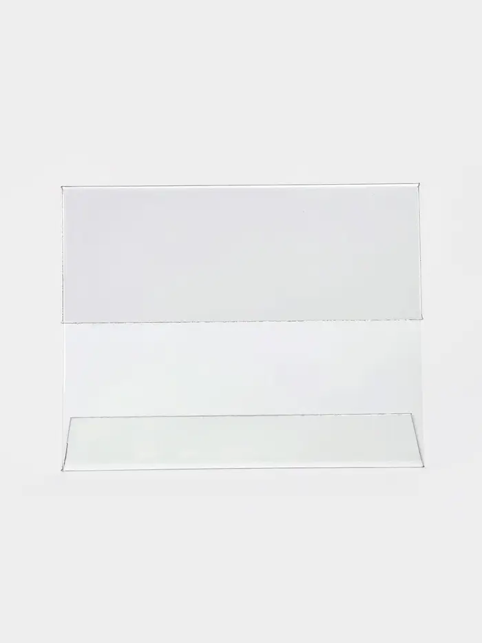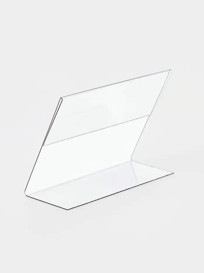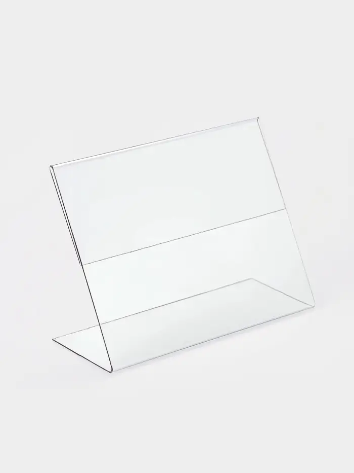 Держатель информации из пластика L-образный. Применяется в качестве держателя ценников и информационного носителя. Высечка ребер жесткости обеспечивают прочность изделия, а боковые загибы плотно удерживают вставленную информацию. Использование антибликового материала делает изделие стойким к царапинам и обеспечивает оптимальный угол обзора. Изготовлен из стандартного материала ПЭТ.
