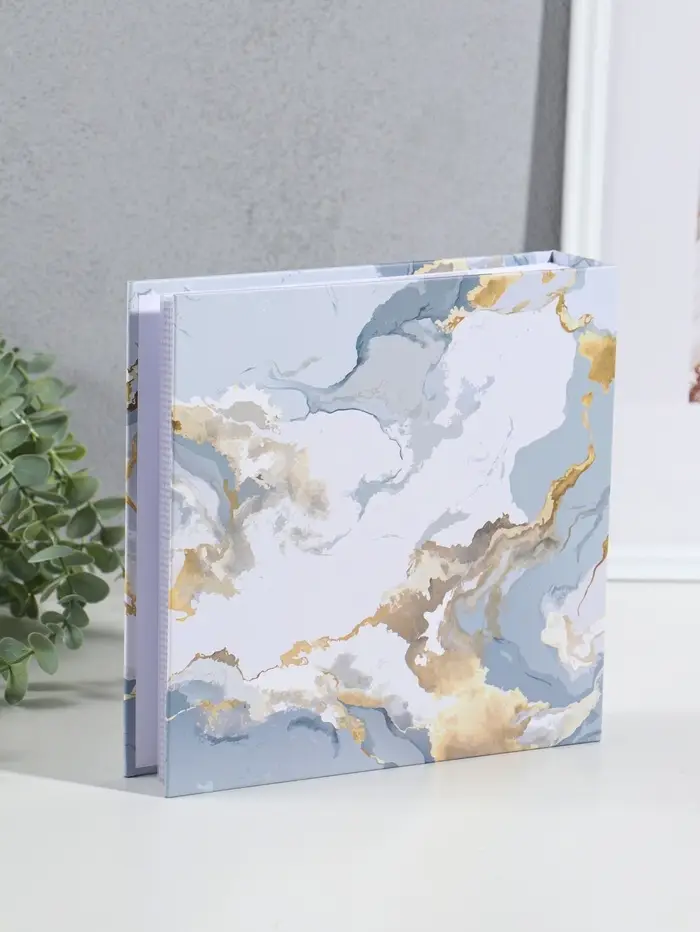 Фотоальбом на 200 фото 10х15 см "Бело-серый мрамор" бумажные листы 5х22х22 см