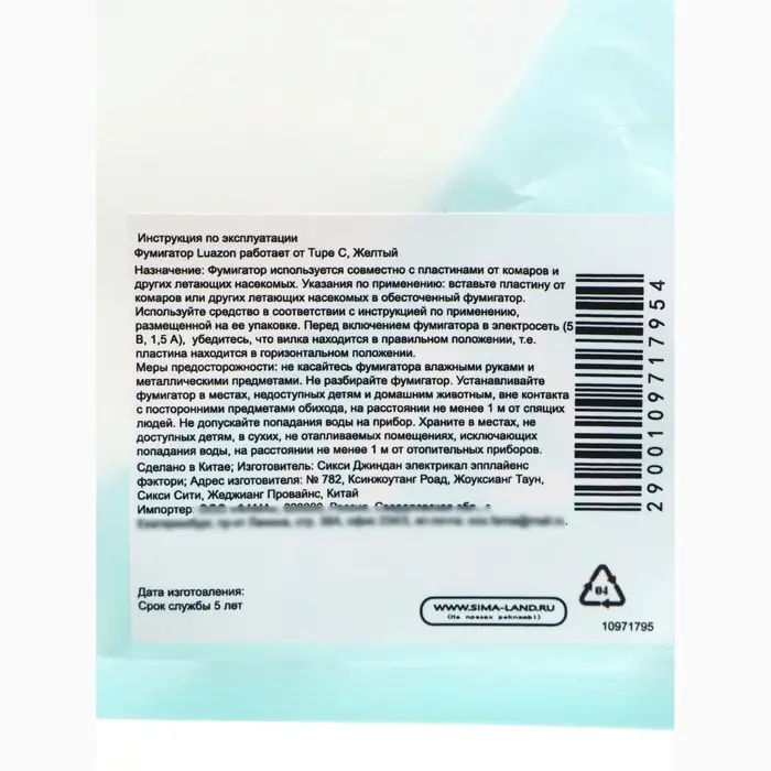 Фумигатор USB - Type - C для жидкости от комаров, жёлтый, SAFEX