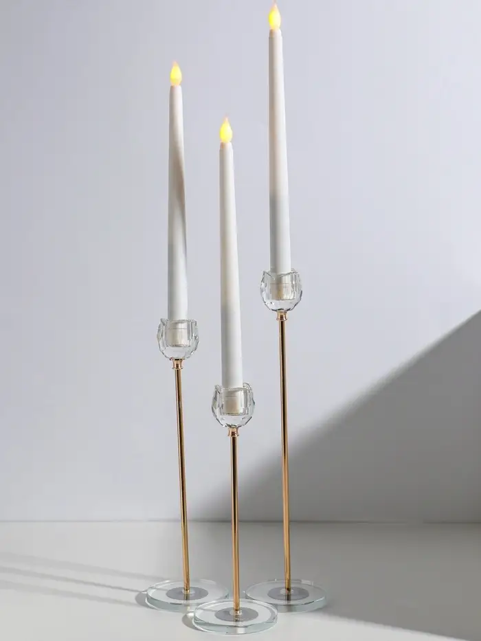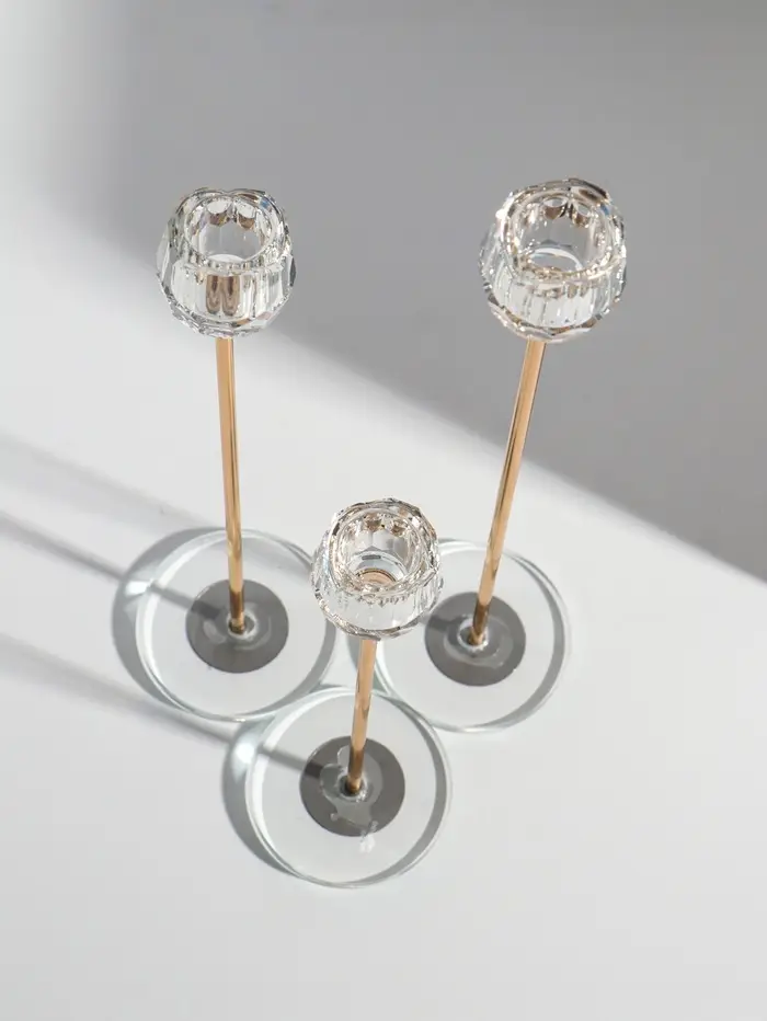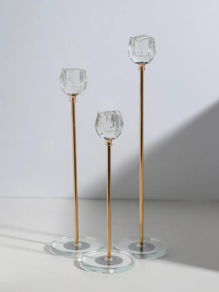 Подсвечник стекло, металл "Бутон-кристалл" d=2,2 см набор 3 шт h=23, 27,5 и 32,5 см