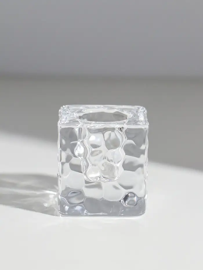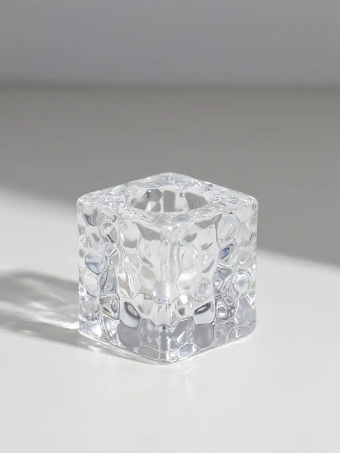Подсвечник стекло на 1 свечу "Куб. Лёд" прозрачный d=2 см 4х4х4 см
