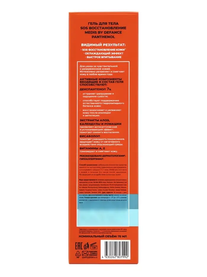 Гель для тела Medis by Defance, SOS быстрое восстановление с пантенолом 7 %, 75 мл