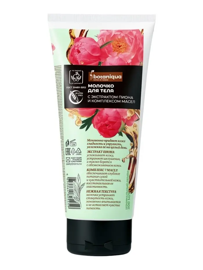 Молочко для тела Botaniqua Sense of nature, с экстрактом пиона и комплексом масел, 200 мл