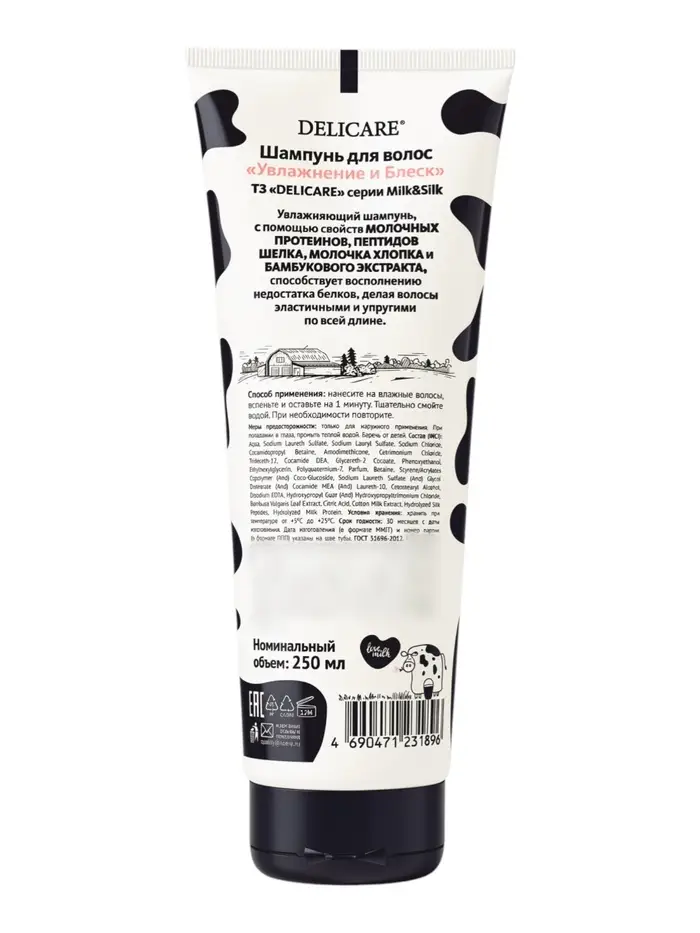 Шампунь для волос Delicare Milk&Silk, увлажнение, 250 мл