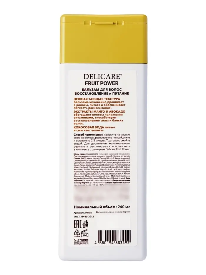 Бальзам‑маска для волос Delicare Fruit Power, восстановление и питание, с манго, 240 мл