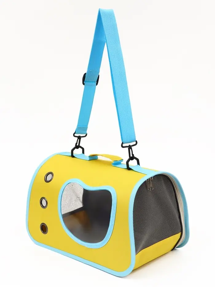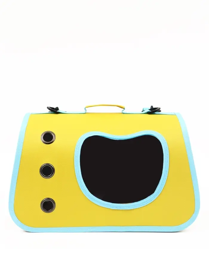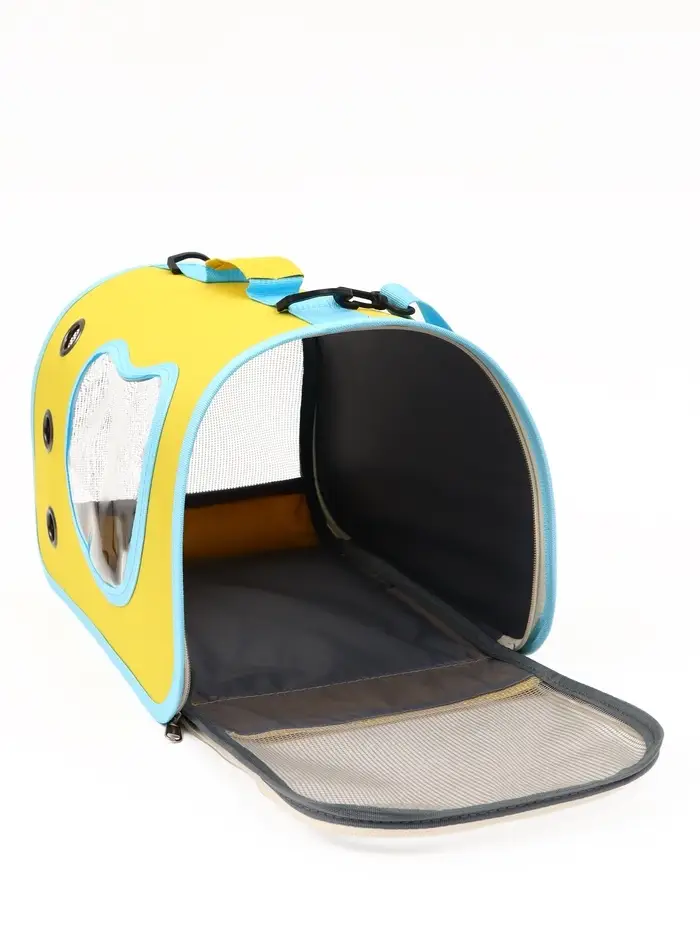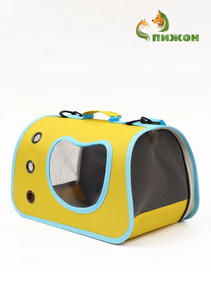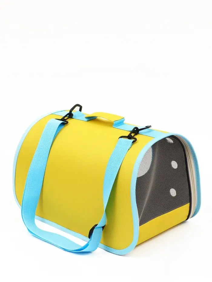 Каркасная сумка-переноска для кошек — комфорт в дороге и спокойствие владельца. Переноска 41×27×25 см выдерживает вес до 8 кг, подходит для большинства пород кошек и мелких собак. Жёлтый корпус с бирюзовыми акцентами легко узнать в толпе, а сетчатые вставки обеспечивают приток свежего воздуха и обзор для питомца.