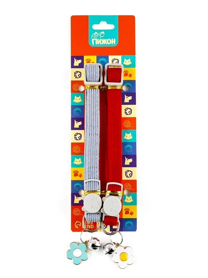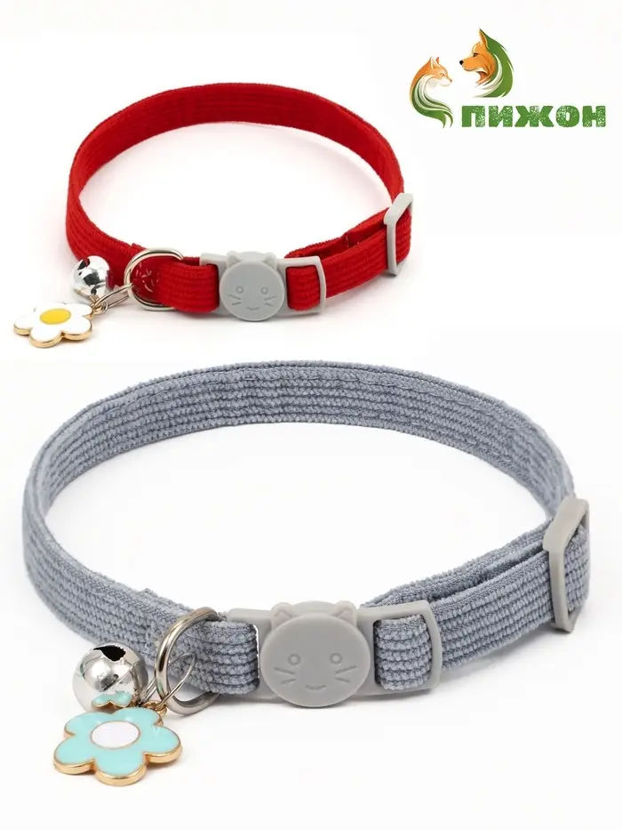 Набор ошейников для кошек — два лаконичных и безопасных аксессуара в сером и красном цветах. Ошейники выполнены из прочного материала, оснащены застёжкой-фастекс, бубенчиком и декоративной подвеской. Без рисунка, но с выразительной цветовой гаммой — идеально для повседневного использования.