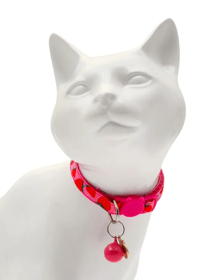 - Бубенчик и подвеска — функция и веселье: мягкий звон помогает отслеживать перемещения питомца дома, а фруктовая подвеска добавляет индивидуальности без утяжеления.