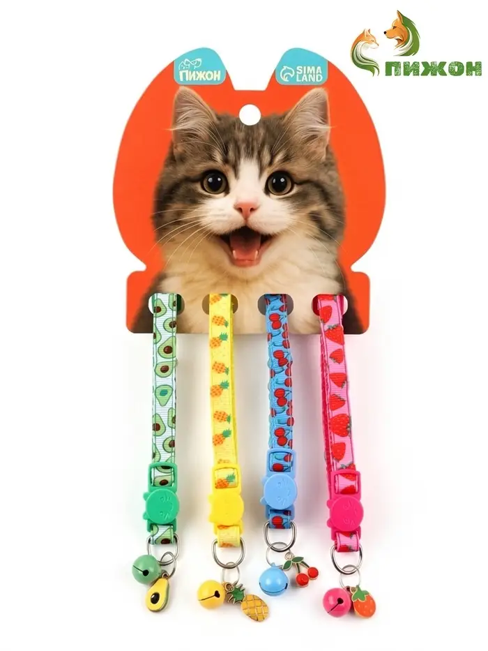 Набор ошейников для кошек «Фрукты», 19-32×1 см, 4 шт.