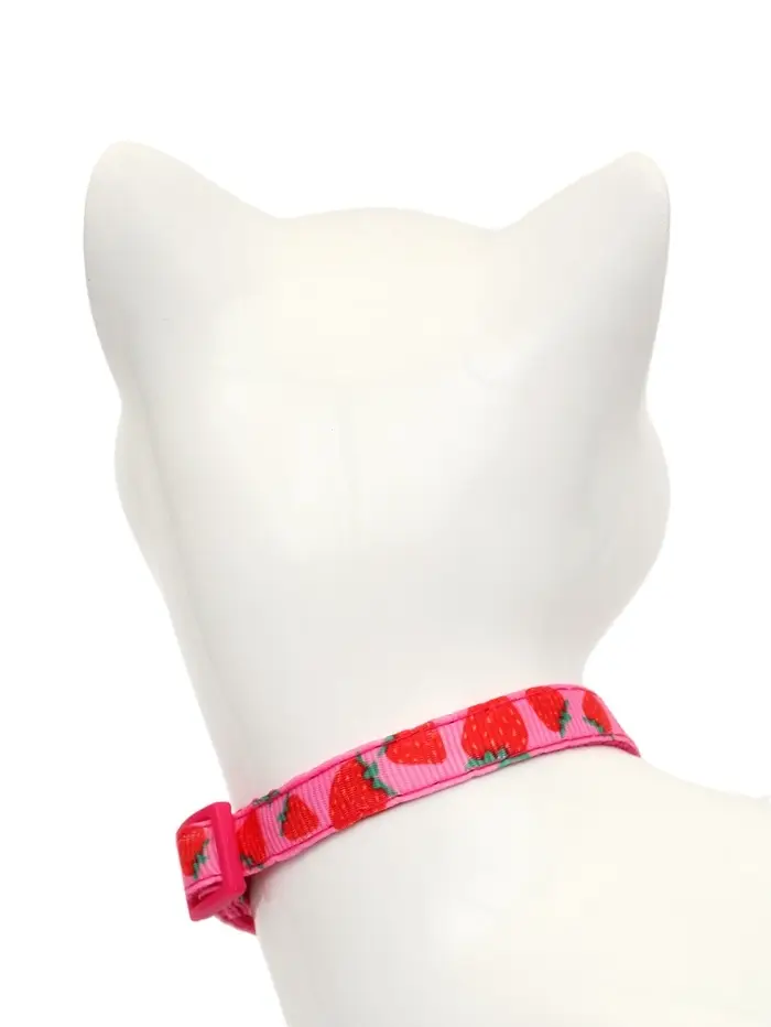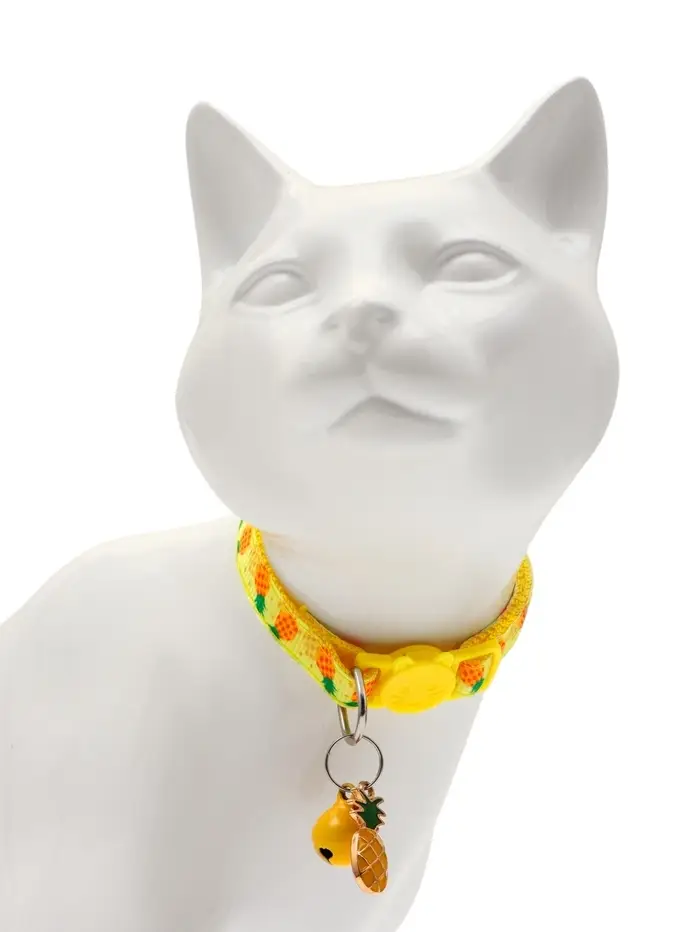 Набор ошейников «Фрукты» — четыре ярких аксессуара для смены настроения и ежедневной безопасности кошки. Ошейники выполнены из прочного материала, оснащены застёжкой-фастекс, бубенчиком и декоративной подвеской. Каждый ошейник украшен сочным фруктовым принтом — идеально для игривых и активных питомцев.