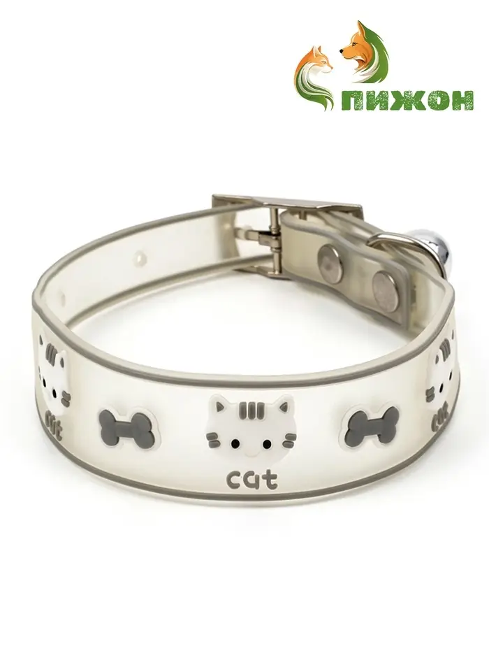 Ошейник для кошек «Пижон. Котя», 30×1 см, со светоотражающим покрытием, серый