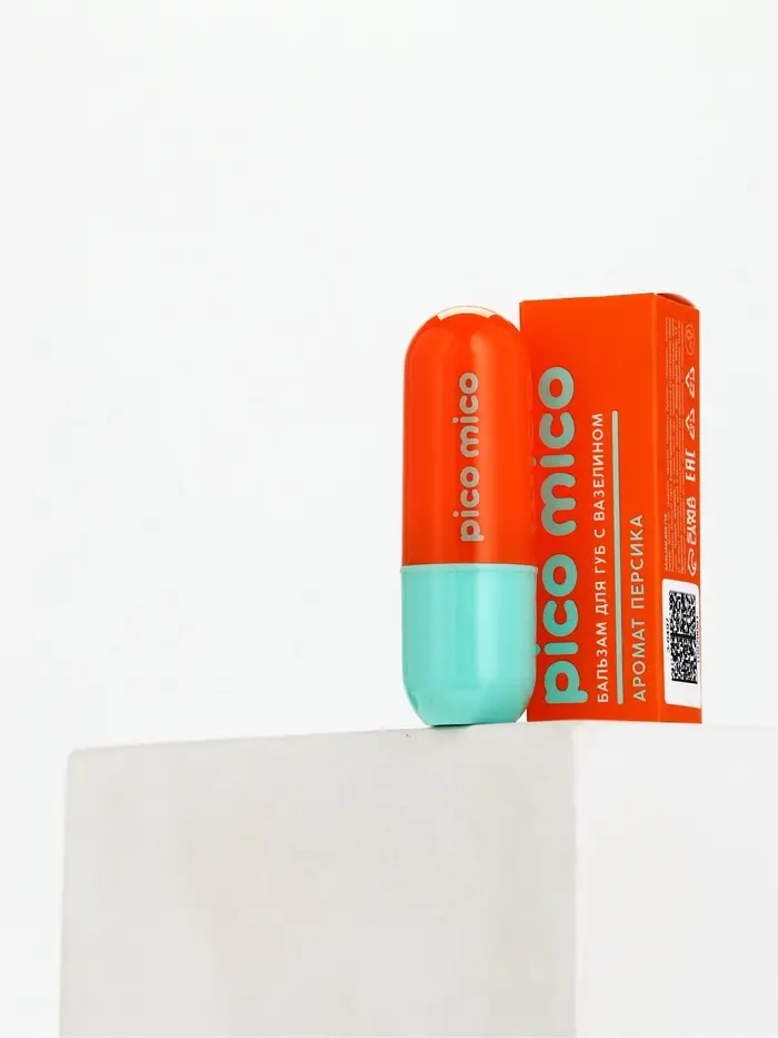 Бальзам для губ с вазелином, аромат: персик, 3.8 г, PICO MICO