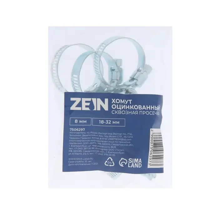 Хомут червячный ZEIN engr, сквозная просечка, диаметр 18-32 мм, ширина 8 мм, оцинкованный