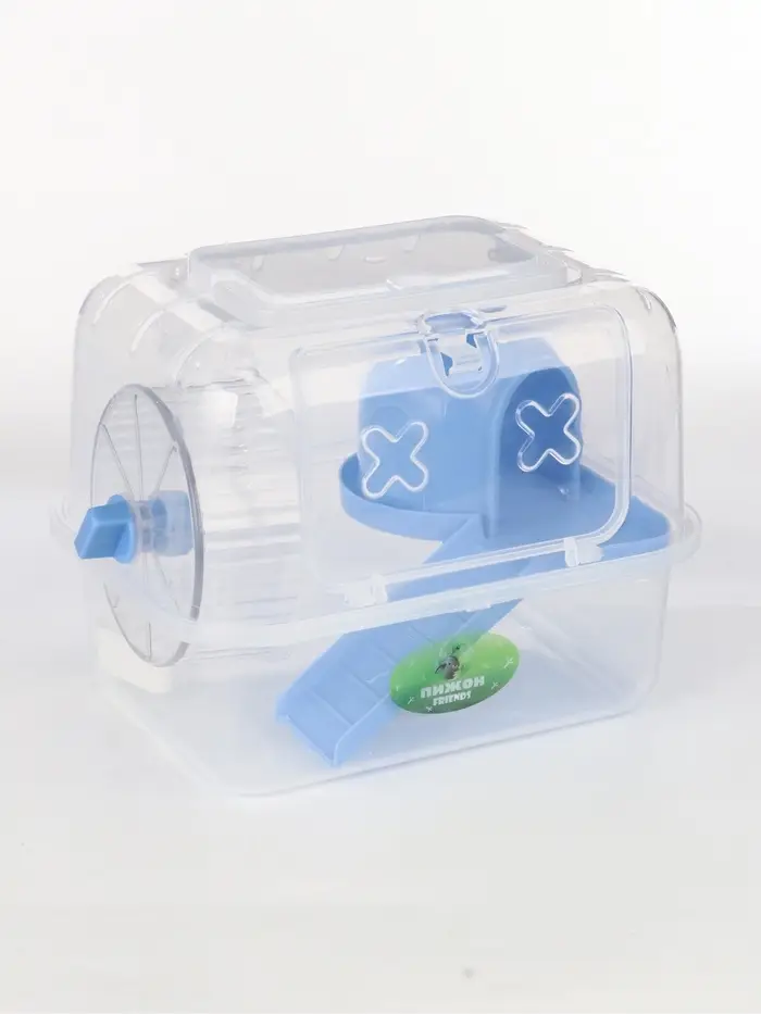 Клетка-переноска для хомяка с аксессуарами — готовый дом и надёжный транспорт в одном. Клетка 27×18×20 см выполнена из прочного прозрачного пластика и укомплектована беговым колесом, домиком и поилкой. Подходит как для постоянного содержания, так и для перевозки питомца — например, к ветеринару или на дачу.