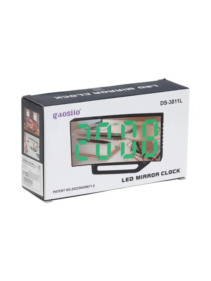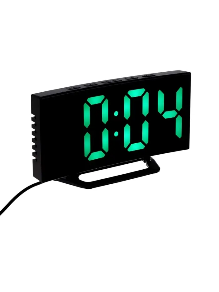 Часы-будильник электронные настольные, термометр, календарь, USB, 15*8 см, зеленые цифры