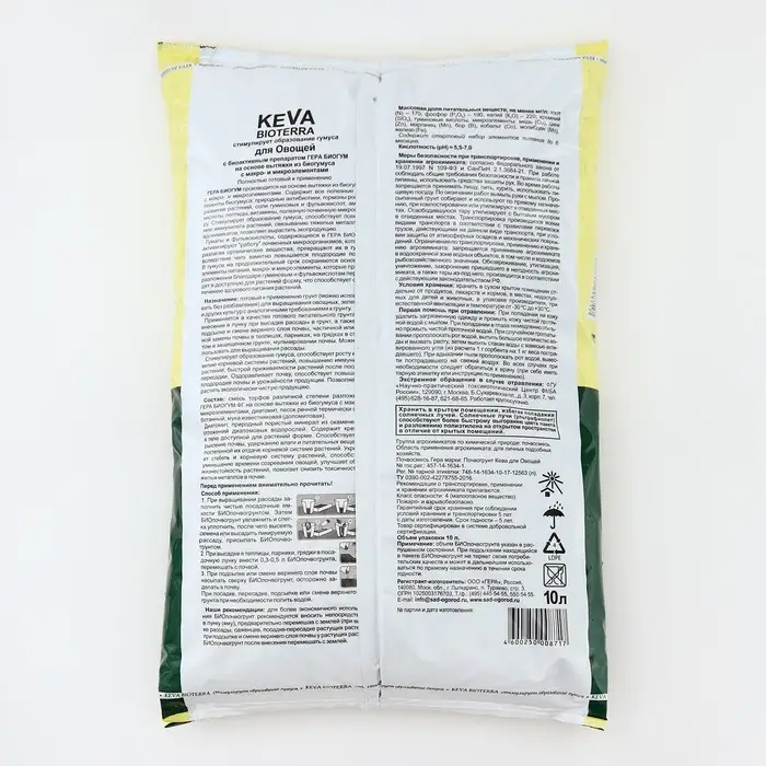 Почвогрунт KEVA BIOTERRA для всех видов Овощей, 10 л