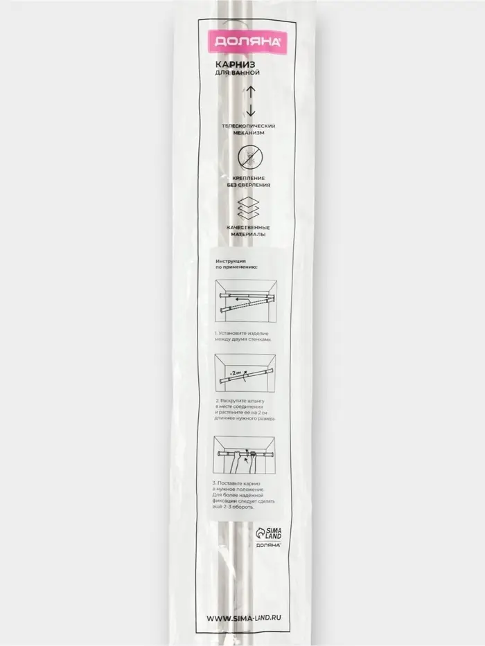 Карниз для ванной комнаты "Блеск" 116-220 см нержавеющая сталь, цвет хром
