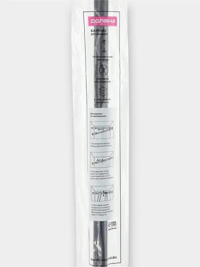 Карниз для ванной комнаты "Блеск" 116-220 см нержавеющая сталь, цвет черный
