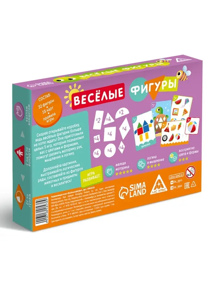 Настольная игра «Весёлые фигуры», развивающая, 55 карт, 3+
