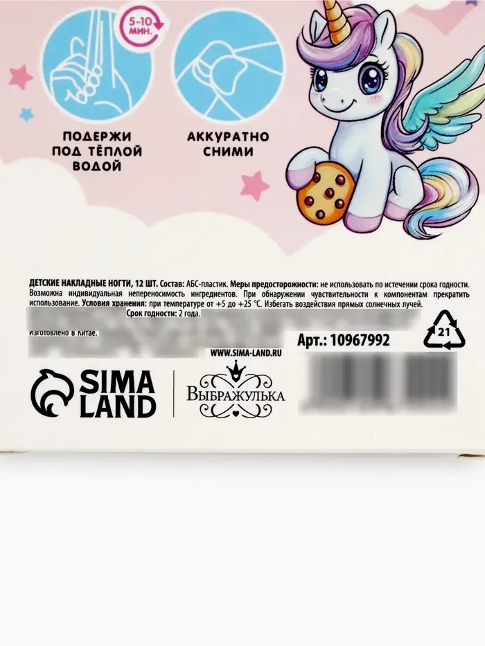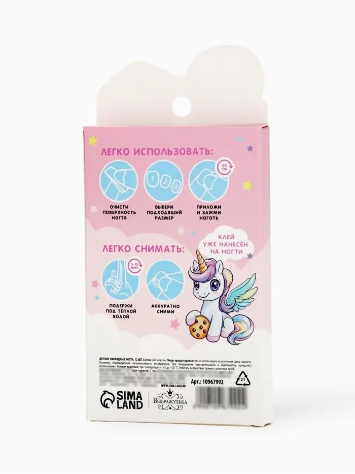 Детские накладные ногти «Единорожка», 12 шт.