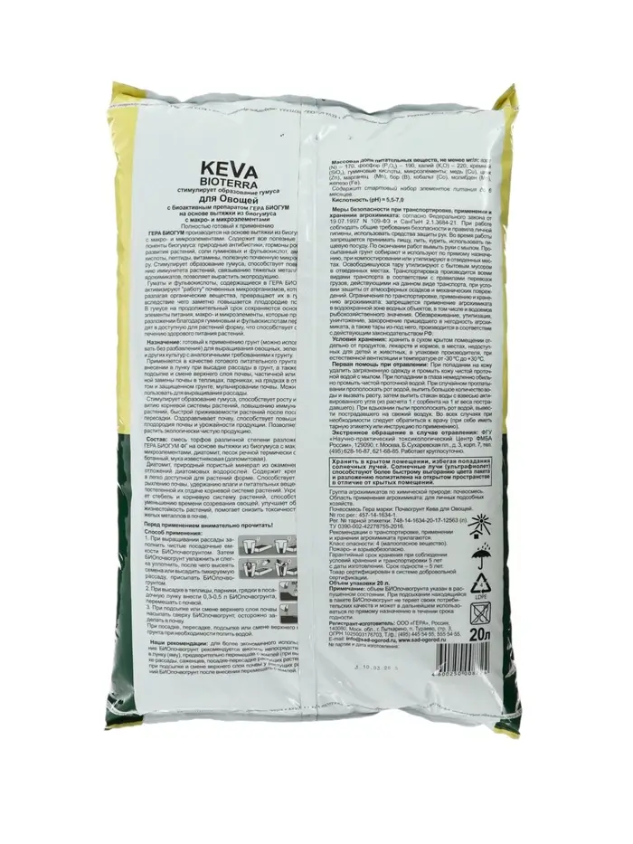 Почвогрунт KEVA BIOTERRA для всех видов Овощей, 20 л