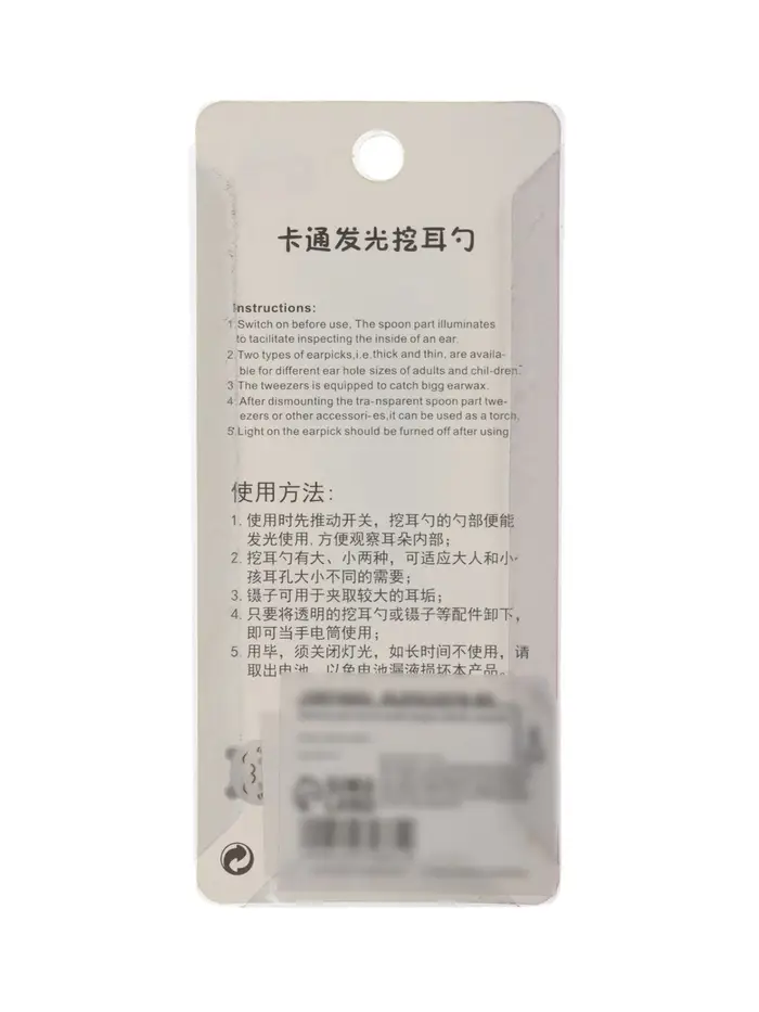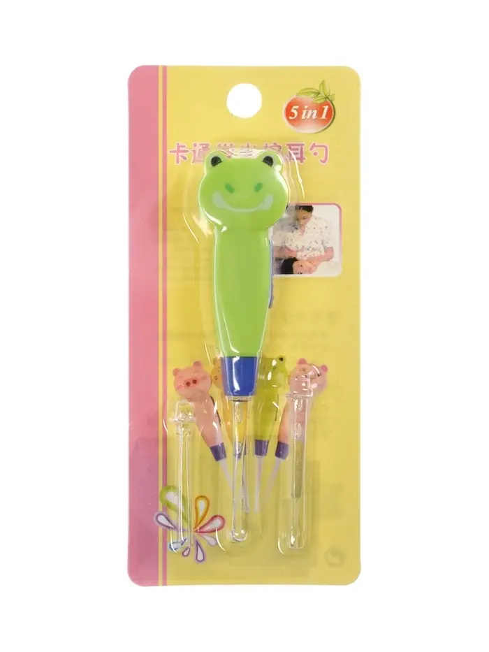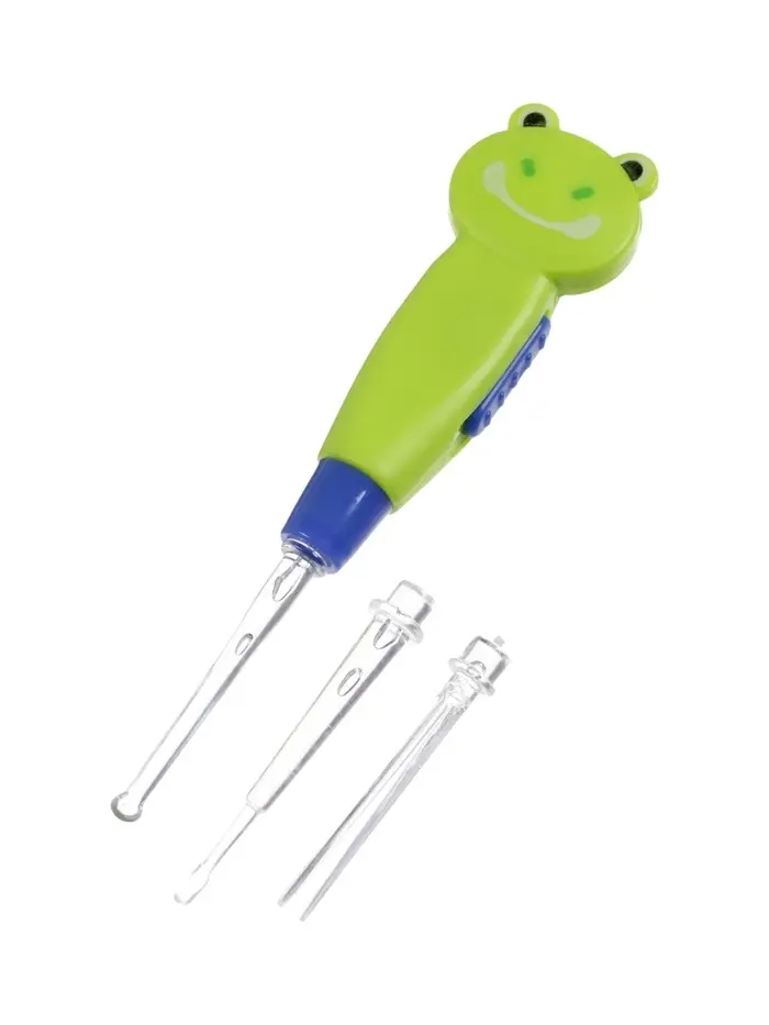 Палочка для чистки ушей LES-02, LED-подсветка, 3 насадки, от батареек, лягушка