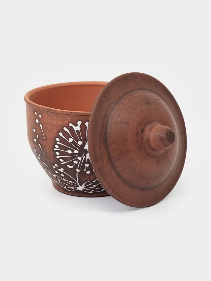 - Отсутствие синтетического покрытия сохраняет естественные свойства обожжённой глины и исключает контакт еды с искусственными составами.