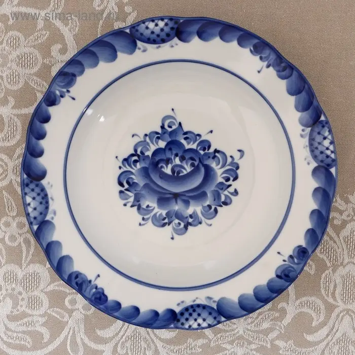 Тарелка «Цветы», глубокая, D=24 см, H=4 см, гжель