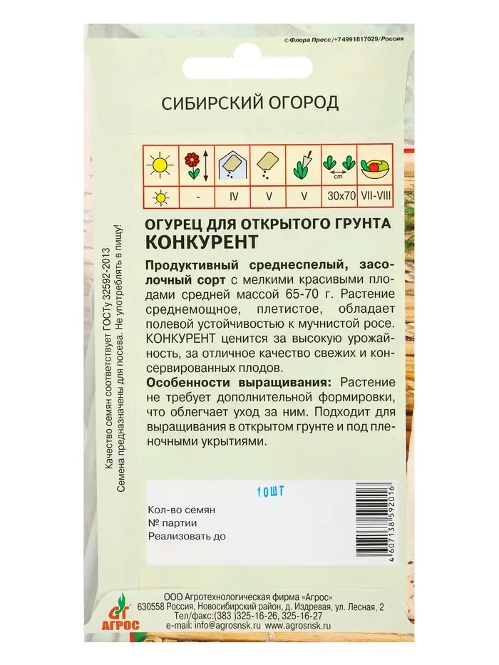Семена Огурец «Конкурент», 10 шт., «Агросс»