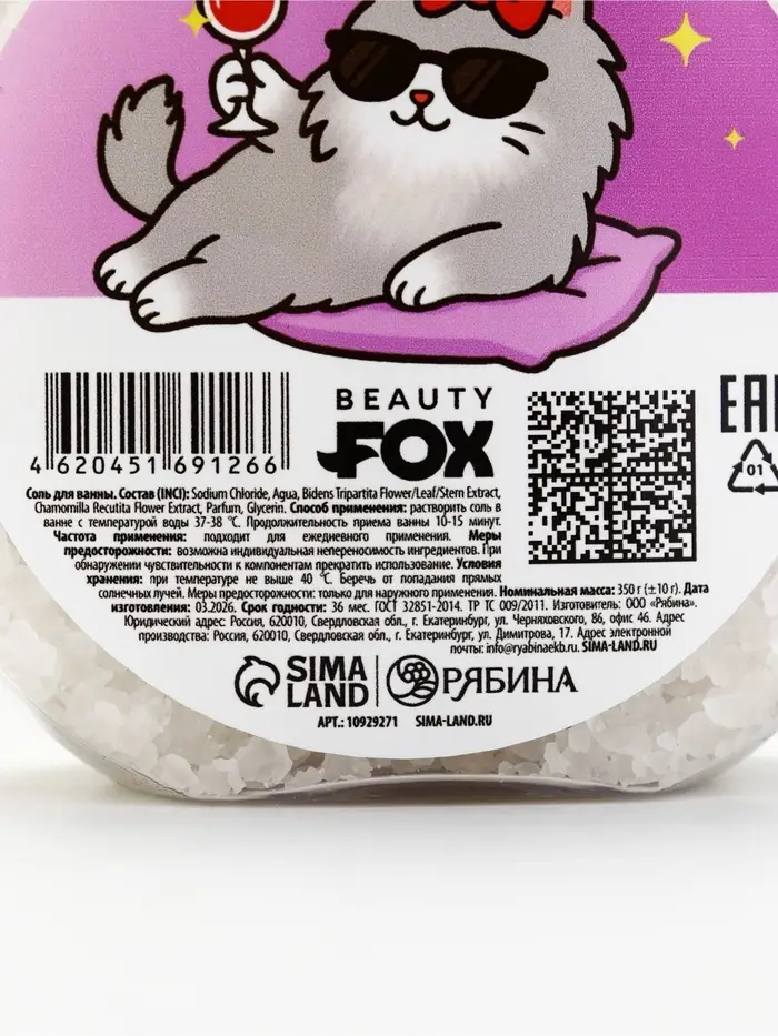 Соль для ванны «Смой стресс», 350 г, BEAUTY FOX