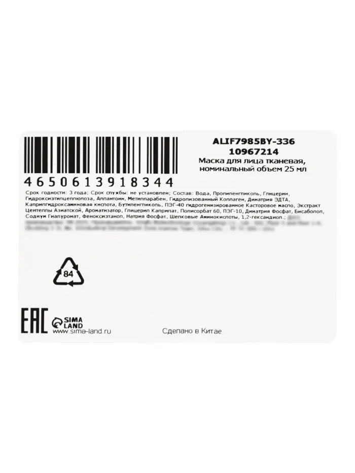 Тканевая маска, увлажняющая «Барашек», 25 мл