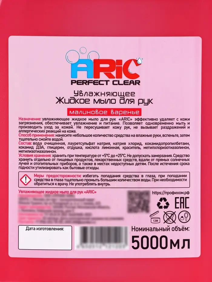 Увлажняющее жидкое мыло для рук ARIC "Малиновое варенье" 5л