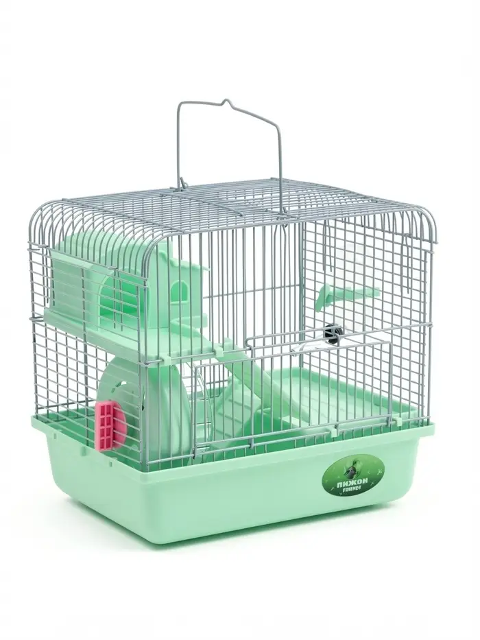 Клетка для грызуна с увеличенным объёмом и полным набором аксессуаров. Клетка 27×21×27 см выполнена из прочного металла и укомплектована беговым колесом, домиком, лесенкой и поилкой. Зелёный цвет создаёт ощущение свежести, а форма даёт питомцу пространство как для бега, так и для вертикальной активности.