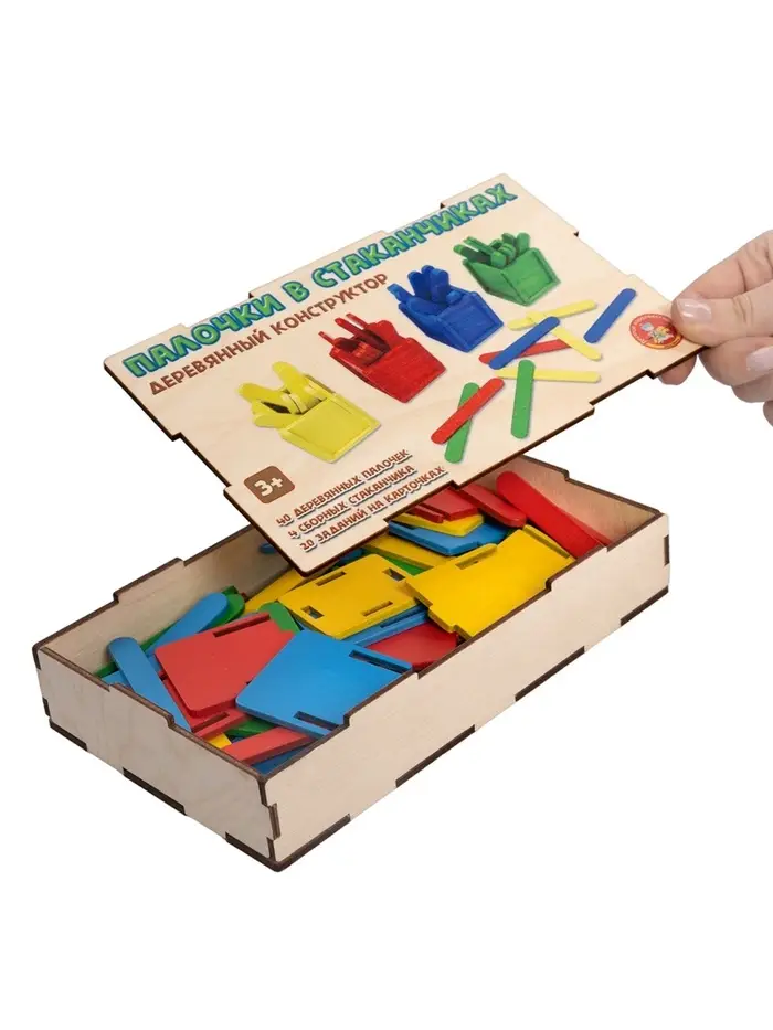 Игра развивающая деревянная "Палочки в стаканчиках" 04565