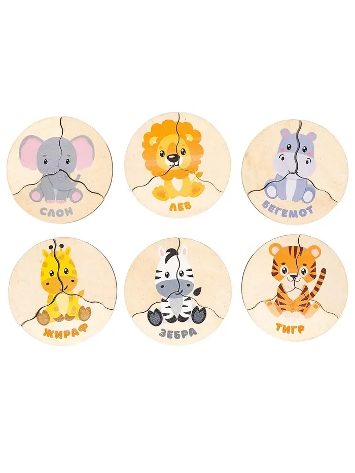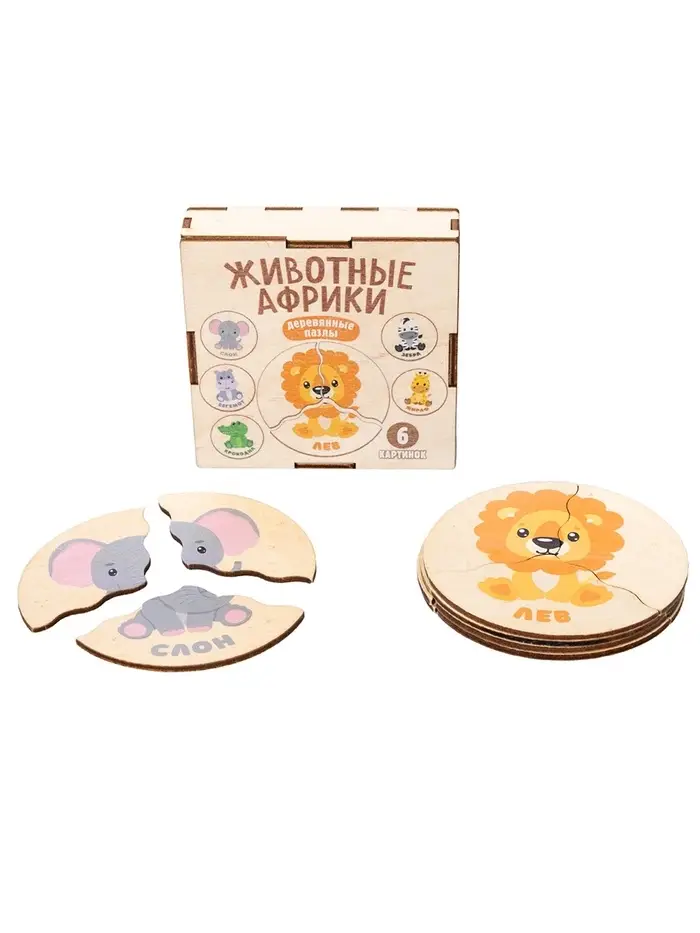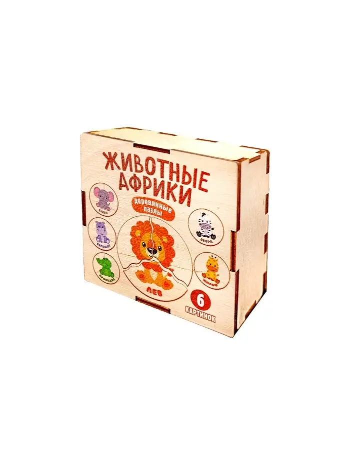 Пазл деревянный "Животные Африки", 6 картинок 04546