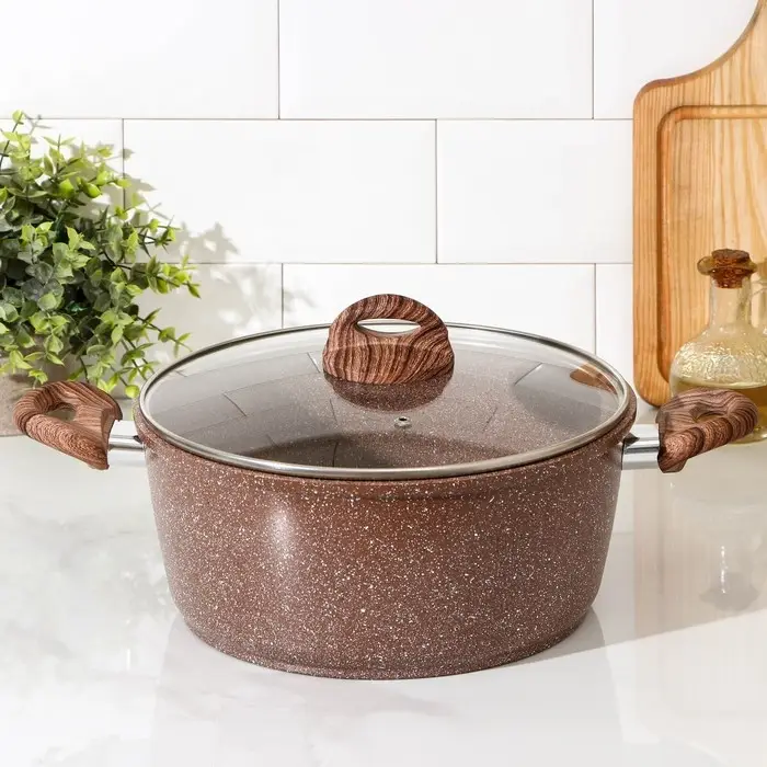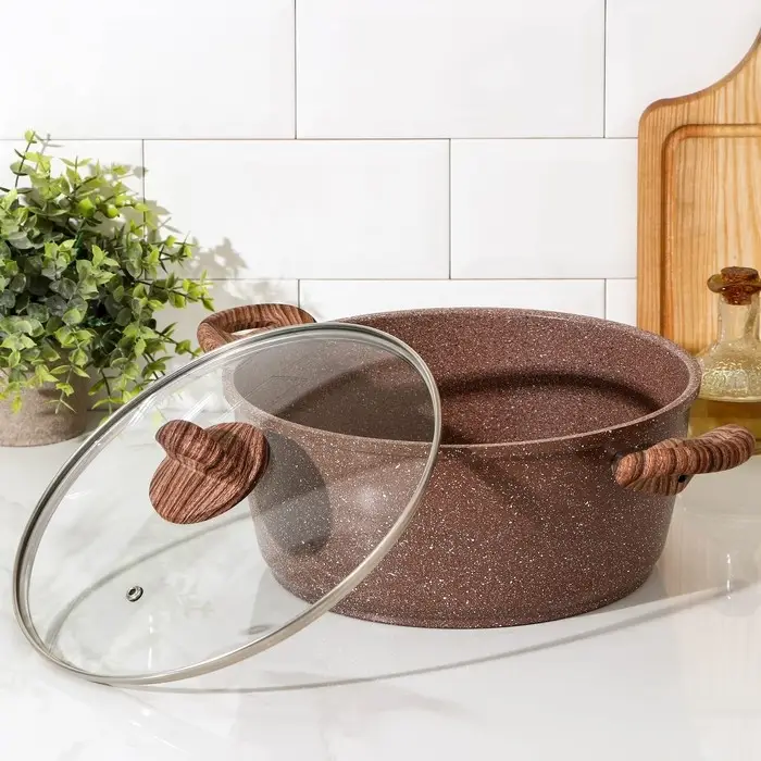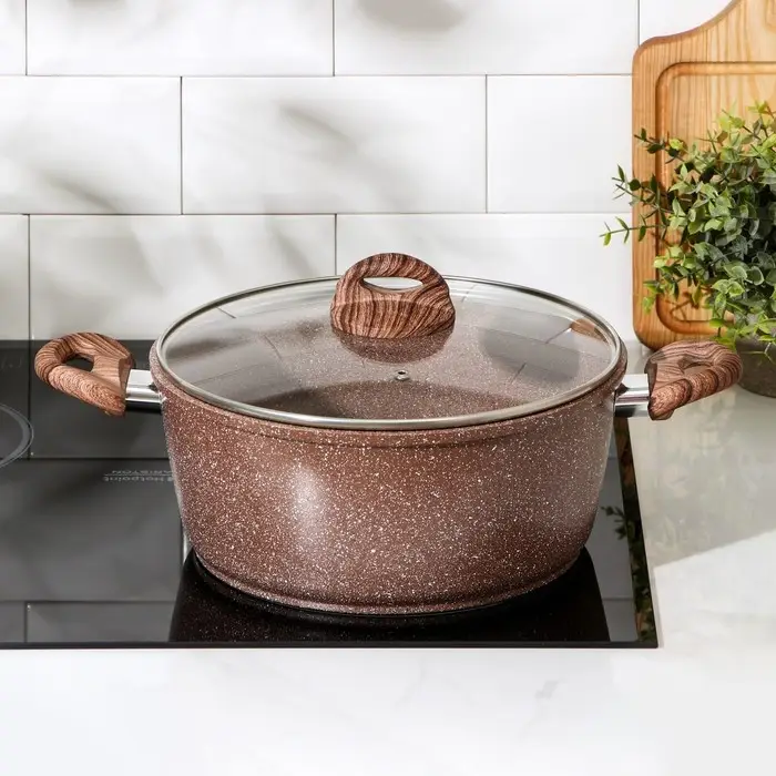 Кастрюля Доляна «Брауни», 5,7 л, d=28 см, h=12 см, стеклянная крышка, антипригарное покрытие, индукция