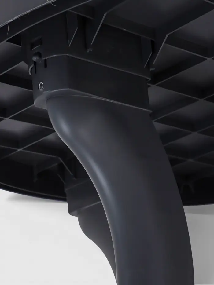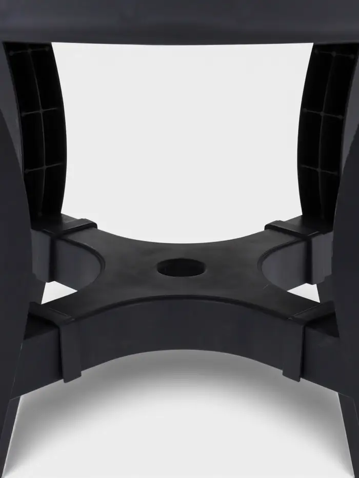 - Пластик для улицы: материал выдерживает осадки, перепады температур и воздействие ультрафиолета. Стол не разбухает от дождя, не трескается на солнце и сохраняет изначальные свойства без дополнительной защиты.