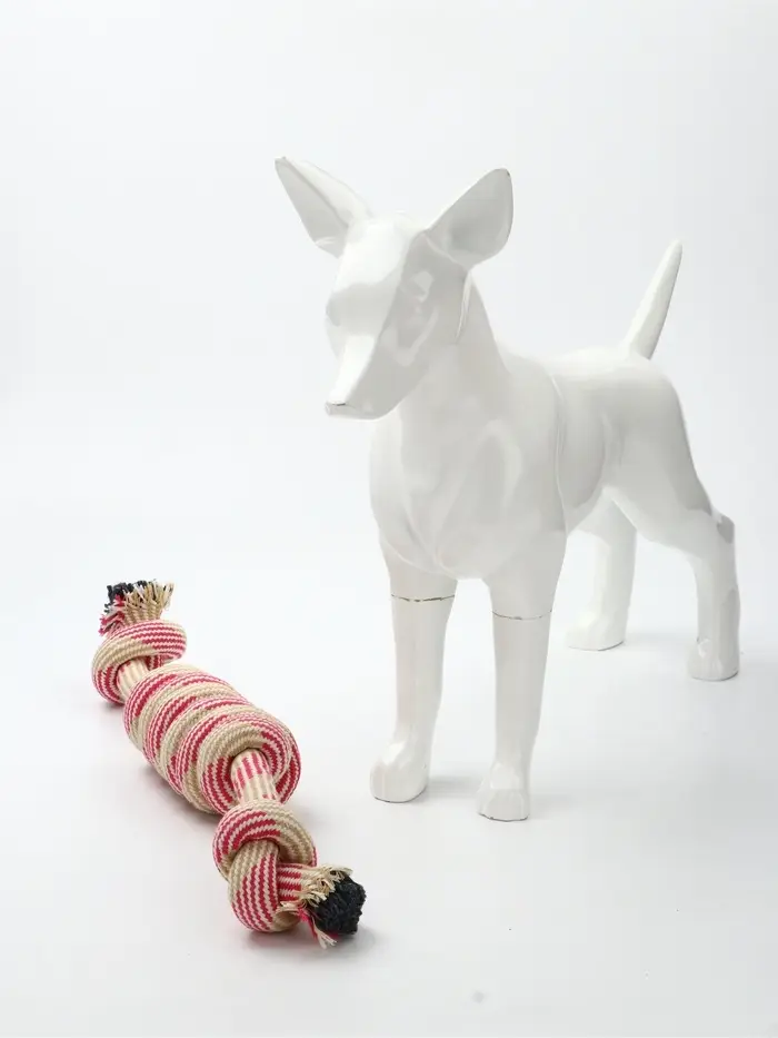 - Естественная чистка зубов: при жевании и рывках канат мягко массирует дёсны и удаляет зубной налёт, снижая риск образования камня и воспалений.