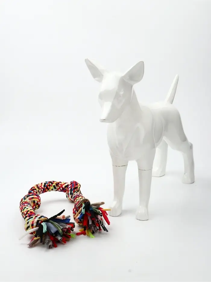 - Разноцветный канат — высокая видимость: яркие оттенки легко выделяются на траве, земле или снегу — игрушку всегда можно найти во время прогулки.