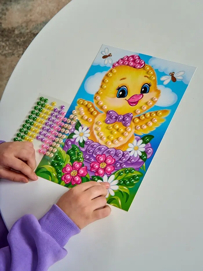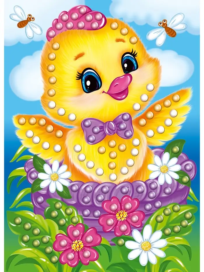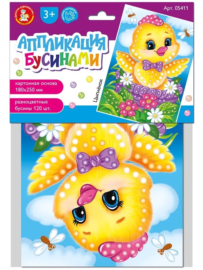 Набор для творчества. Аппликация бусинами "Цыплёнок" (180х250 мм, европодвес)