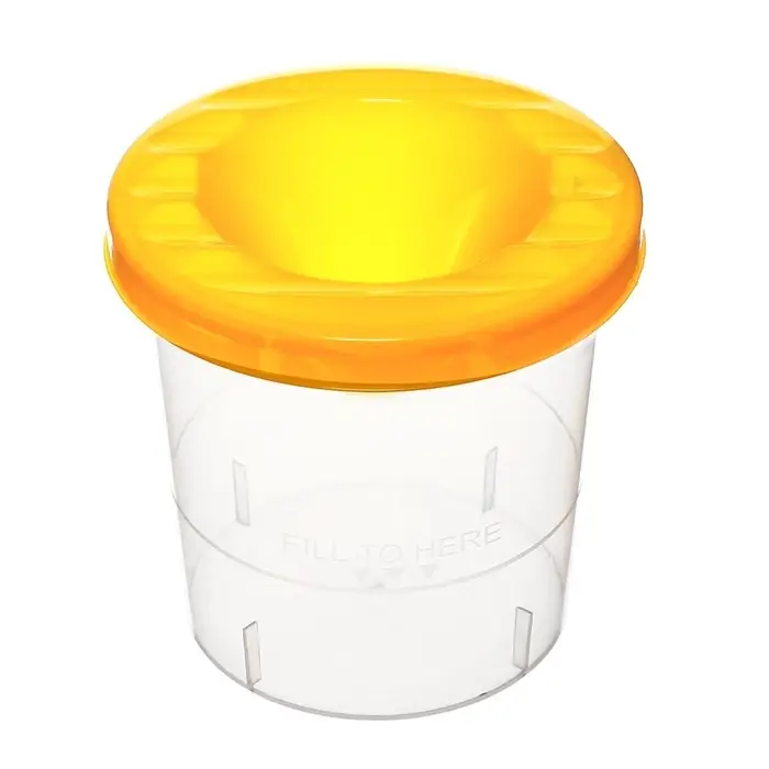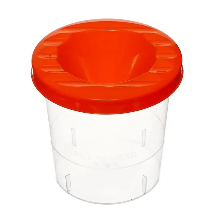 Стакан-непроливайка предназначен для промывания кисточек в процессе рисования. Форма крышки в виде воронки не даст ребенку пролить воду в процессе творчества при опрокидывании. Специальная линия (метка безопасного уровня воды) указывает на оптимальный уровень наполнения стакана водой. На крышке имеются продольные желобки для кисточек. Устойчиво располагается на рабочей поверхности.