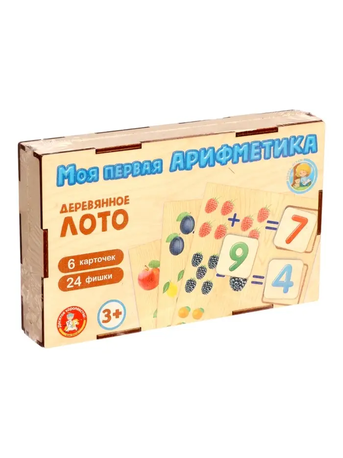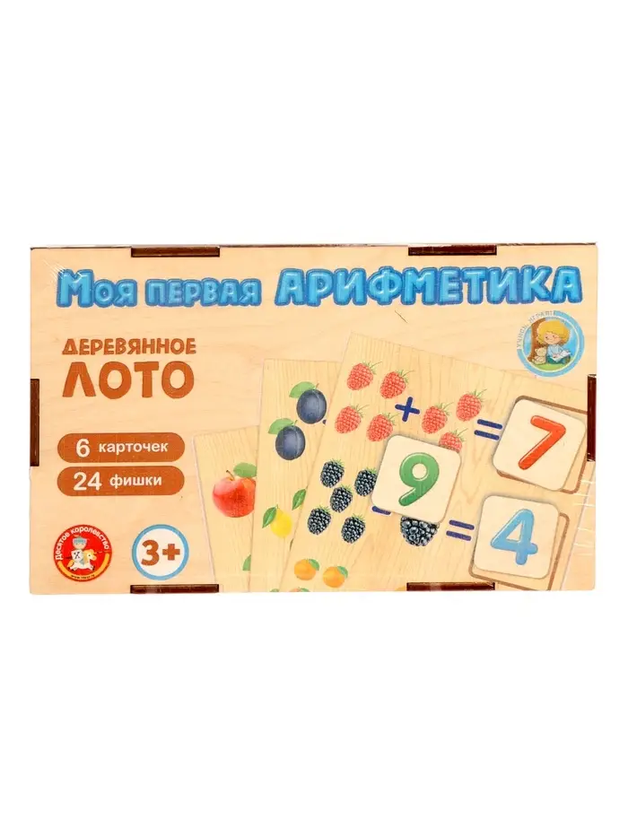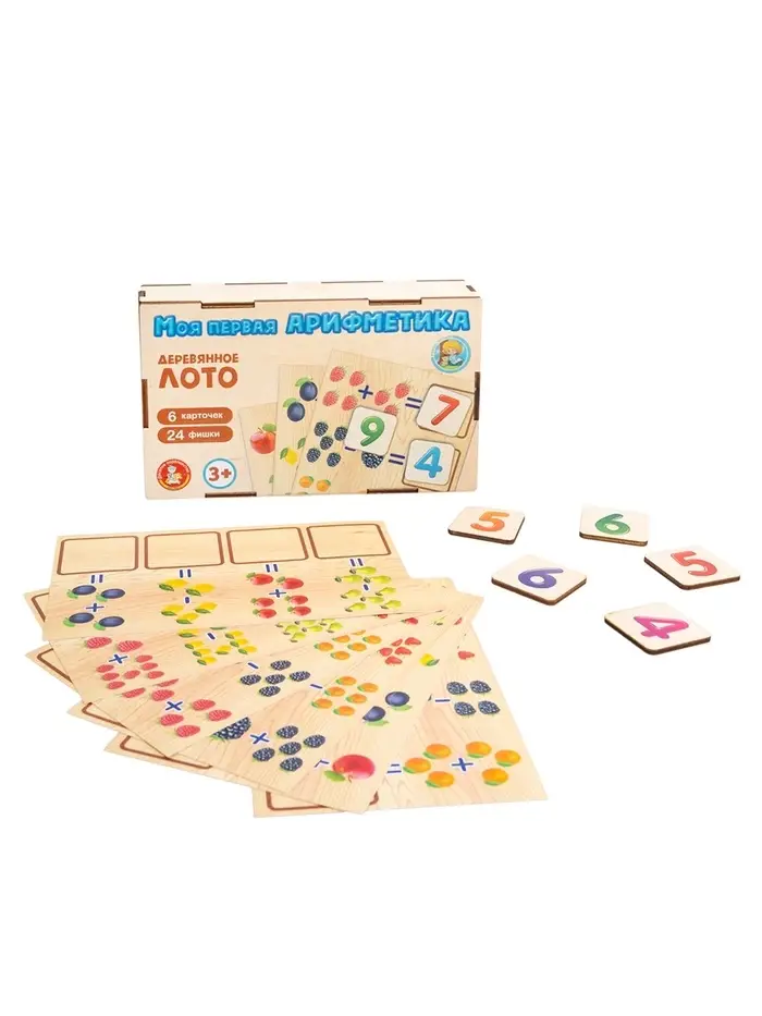 Первые шаги в счёте — через игру, понятную ребёнку Деревянное лото «Учимся считать» помогает мягко познакомить малыша с цифрами и простыми арифметическими действиями. Формат классического лото превращает обучение в живой процесс: ребёнок не заучивает, а постепенно начинает понимать связь чисел и количества.
