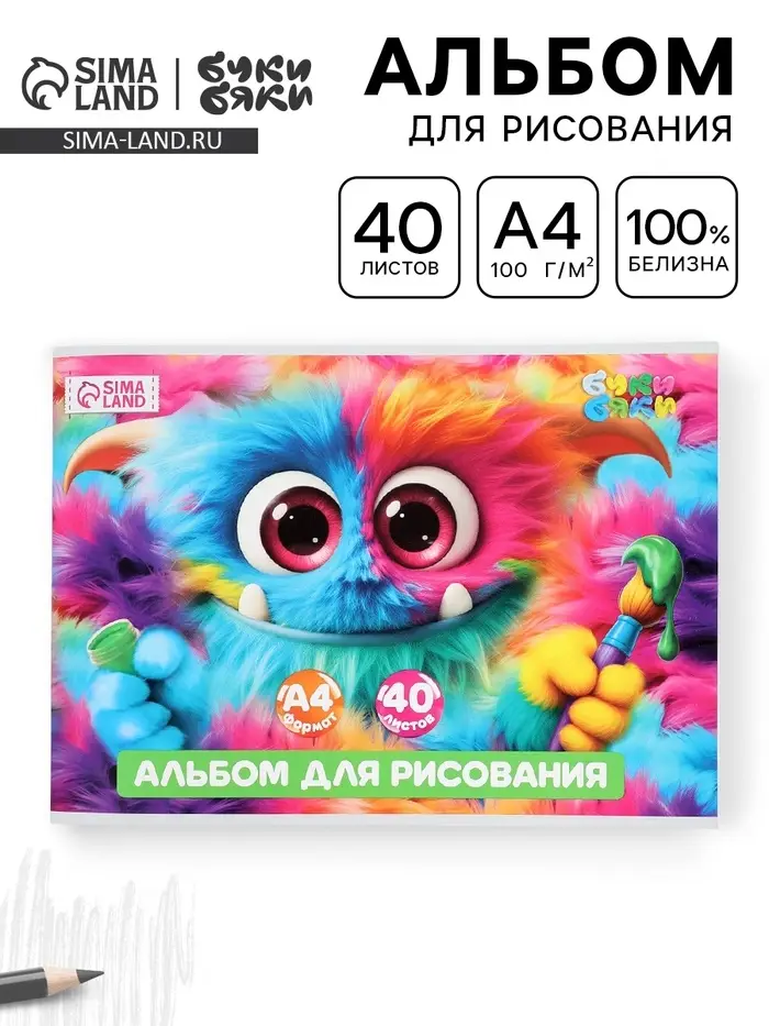 Альбом для рисования, 40 листов, на скрепке, А4 «Монстрик»