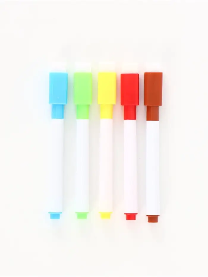 - 5 цветных маркеров в комплекте, которые легко удаляются с помощью губки на колпачке.