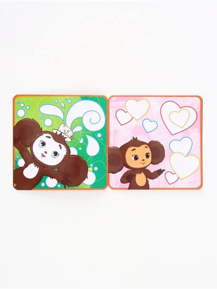 - Страницы с яркими контурами картинок, вдохновлённых мультфильмом «Чебурашка".