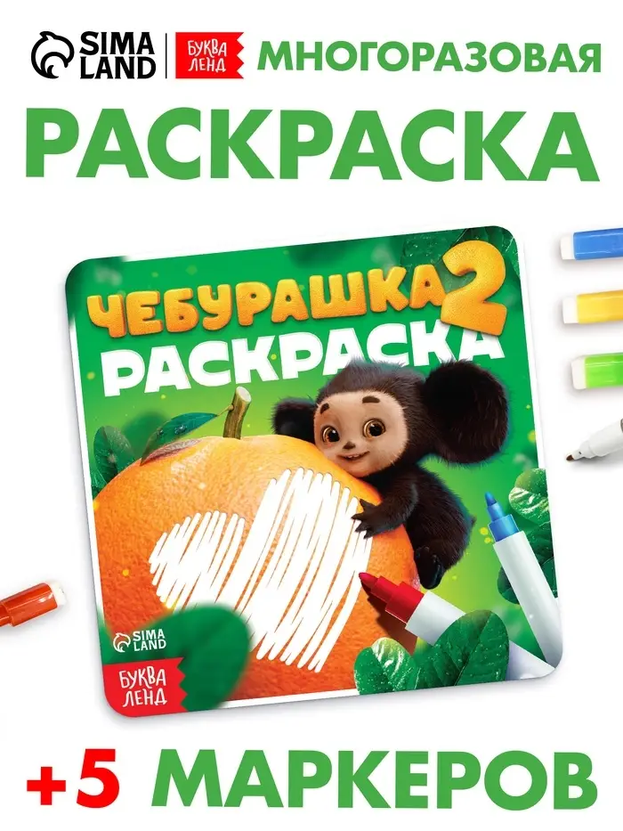 Многоразовая раскраска «Чебурашка» — это уникальное изделие для детей от 3 лет с героями любимого мультфильма. Благодаря специальным маркерам, которые легко стираются, ребёнок может раскрашивать картинки снова и снова, создавая новые истории каждый раз.