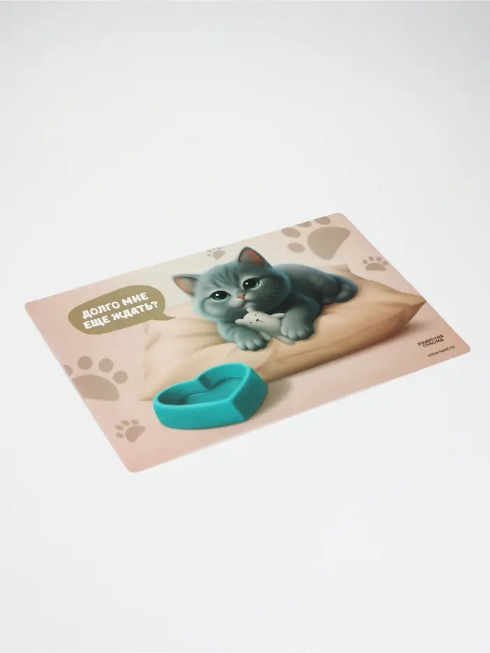 Коврик под миску «Кот не работает, кот ест!» 43×28 см
