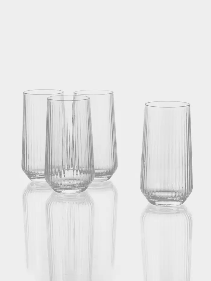 Эти стеклянные стаканы с рельефной поверхностью — универсальное решение для повседневного использования. Их лаконичный дизайн и удобный объём подходят для воды, соков, прохладительных напитков и сервировки стола. Набор из четырёх одинаковых стаканов обеспечивает гармоничный вид на любом столе, дома или в кафе.
